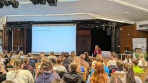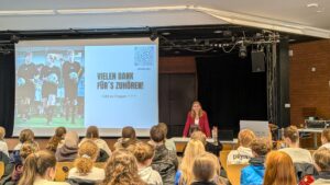 Sehr praxisnah zeigte Hanna, wie sich Neben- oder erste Jobs bereits parallel zur Schulzeit organisieren lassen. Es ging um Zeitmanagement, persönliche Organisation und darum, wie man Schritt für Schritt Qualifikationen aufbauen kann. Im anschließenden Austausch stellten die Schüler*innen zahlreiche spannende Fragen — von ganz konkreten Situationen rund um den VAR im Fußball bis hin zum Zusammenhang zwischen Jurastudium und Schiedsrichterei. Die Vielfalt ihres Lebenswegs wurde dabei besonders greifbar.