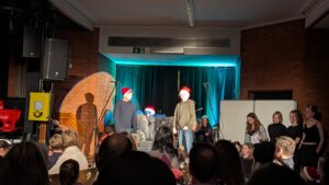 Unter dem Leitmotiv, musikalisch „weltweit das beste Weihnachten zu suchen“, präsentierten Chor unter der Leitung von Frau Pankoke und Band unter der Leitung von Herrn Dr. Rossow ein abwechslungsreiches Programm mit weihnachtlichen Stücken aus verschiedenen Ländern. Immer wieder wurde die musikalische Reise durch kurze Theaterszenen verbunden, die den roten Faden des Abends aufnahmen: Auf der Suche nach Weihnachten in aller Welt wurden Briefe nach Lüneburg an das Johanneum geschrieben, aus denen Schüler*innen, Lehrkräfte sowie Ehemalige vorlasen. So entstanden kleine Weihnachtsgeschichten, die das Publikum durch den Abend begleiteten und für viele warme, berührende Momente sorgten.