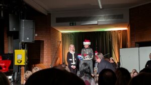 Der emotionale Höhepunkt folgte zum Abschluss beider Konzerte, als Publikum, Band und Chor gemeinsam „Feliz Navidad“ anstimmten – ein Moment voller Gemeinschaft und Gänsehaut. Entsprechend groß war der Dank: Schulleiterin Frau Lindemann sowie in der zweiten Vorstellung Frau Dr. Bendrath würdigten die Arbeit von Frau Pankoke und Herrn Dr. Rossow mit Blumen und bedankten sich ebenso bei Familie Dombrowski für die Bühnenarbeiten, der Technik-AG sowie allen Mitwirkenden aus Band und Chor mit einer kleinen Aufmerksamkeit.