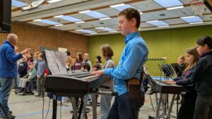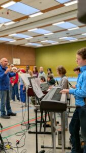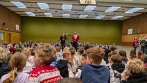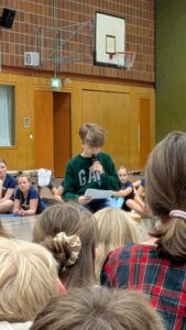 Den musikalischen Auftakt gestalteten Chor und Band der Jahrgänge 5 und 6, bevor Frau Lindemann, Herr Kruse und Frau Reuter die Gäste herzlich begrüßten. Für einen ruhigen, besinnlichen Moment sorgte anschließend Ben aus der 6F2, der als Sieger des Vorlesewettbewerbs eine Weihnachtsgeschichte vortrug und die Halle für einen Augenblick ganz still werden ließ.