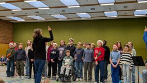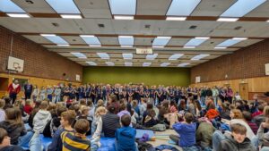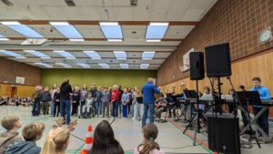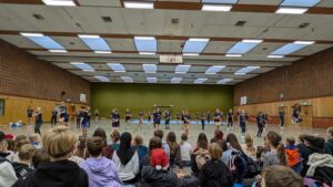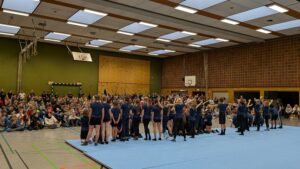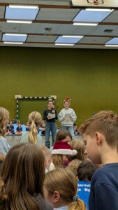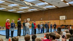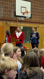 Nach der Siegerehrung des Quiz und der Verabschiedung durch Frau Dr. Bendrath folgte ein ganz besonderer Abschluss: Gemeinsam sangen alle Anwesenden „Feliz Navidad“, die Sporthalle wurde zur großen Weihnachtsklasse – laut, fröhlich und voller Zusammenhalt. Ein Moment, der vielen sicher noch lange in Erinnerung bleiben wird.