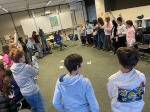 Mit viel Bewegung, Musik und spielerischen Methoden stellten sich die Schülerinnen und Schüler auf Französisch vor, sprachen über ihre Lieblingsaktivitäten und Lieblingstiere und erweiterten dabei ganz nebenbei ihren Wortschatz um neue Begriffe. Interaktive Spiele und Gespräche über Frankreich sorgten für eine motivierende Atmosphäre und machten Französisch einmal ganz anders erlebbar.