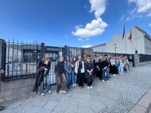 Dank der schnellen ICE-Verbindung von Lüneburg nach Berlin verlief die Anreise angenehm und unkompliziert, sodass der Tag in der Hauptstadt direkt mit inhaltlichen Programmpunkten beginnen konnte. In zwei Gruppen aufgeteilt, setzten sich die Schülerinnen und Schüler zunächst mit dem Bundesministerium der Verteidigung sowie dem Auswärtigen Amt auseinander. Dort erhielten sie eindrucksvolle Einblicke aus erster Hand — unter anderem von einem stellvertretenden Botschafter. Besonders erfreulich war, wie interessiert und gut vorbereitet unsere Schülerinnen und Schüler auftraten: Mit vielen klugen Fragen zur Arbeitsweise, zu politischen Abläufen und zu aktuellen Herausforderungen der Außenpolitik kamen sie intensiv mit den Gesprächspartnern ins Gespräch.