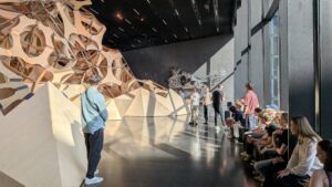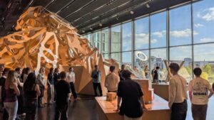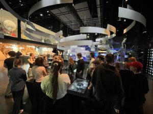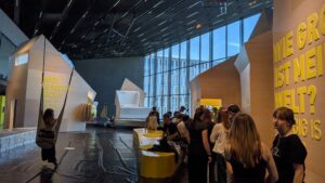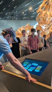 Zum Abschluss des Tages besuchte der Jahrgang das Futurium. Dort nahmen die Schülerinnen und Schüler an einer Führung teil, die verschiedene Zukunftsentwürfe und gesellschaftliche Entwicklungen in den Blick nahm. Die Ausstellung regte nicht nur zum Nachdenken an, sondern auch zu vielen Gesprächen untereinander: Welche Zukunftsbilder erscheinen wünschenswert? Welche Herausforderungen kommen auf Gesellschaft und Politik zu? Das Futurium erwies sich dabei als inspirierender und sehr empfehlenswerter Lernort.