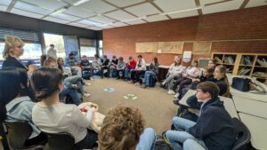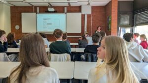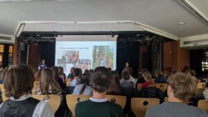 Abgerundet wurde das Programm durch unsere Berufsberaterin Frau Unterschütz, die mit den Schüler*innen den Blick bewusst über die formale Gestaltung eines Lebenslaufs hinaus richtete. Im Mittelpunkt stand nicht allein die Frage, wie ein Lebenslauf korrekt geschrieben wird, sondern vielmehr, wie die kommenden Jahre bis zum Abitur sinnvoll genutzt werden können: Welche Erfahrungen lassen sich durch Ferienjobs, Hobbys, Sport, Ehrenamt, Praktika oder andere Tätigkeiten sammeln? Wie können junge Menschen auf diese Weise herausfinden, welche beruflichen Wege zu ihren Interessen und Stärken passen? Und wie können solche Erfahrungen später dazu beitragen, bei Bewerbungen für Arbeitgeber interessant und authentisch zu wirken? Damit wurde deutlich, dass berufliche Orientierung nicht erst mit der konkreten Bewerbung beginnt, sondern bereits in vielen kleinen Entscheidungen und Erfahrungen des Schulalltags und der Freizeit.
