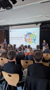 Ergänzt wurde der Tag durch spannende externe Impulse: Die Austauschorganisation YFU stellte Möglichkeiten für ein Auslandsjahr vor – und zeigte gleichzeitig, wie man sich erfolgreich für ein solches Programm bewirbt. Außerdem konnten die Schüler*innen durch ein Angebot der IHK an digitalen Unternehmensvorstellungen teilnehmen. So lernten sie Berufsbilder bei Volkswagen kennen und erhielten konkrete Einblicke direkt aus der Praxis.